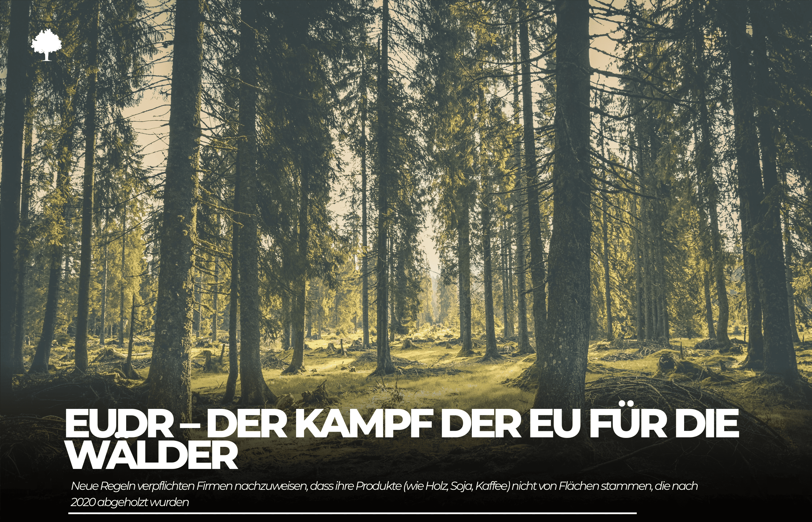 Die EUDR, kurz für EU Deforestation Regulation (EU-Verordnung zur Bekämpfung der Entwaldung), ist ein Gesetzeswerk, das 2023 von der Europäischen Union beschlossen wurde. Ihr Hauptzweck besteht darin, die schädlichen Auswirkungen des europäischen Konsums auf die weltweiten Wälder einzudämmen. Die Verordnung trat im Juni 2023 in Kraft, ihre verbindliche Anwendung beginnt jedoch erst Ende 2024.