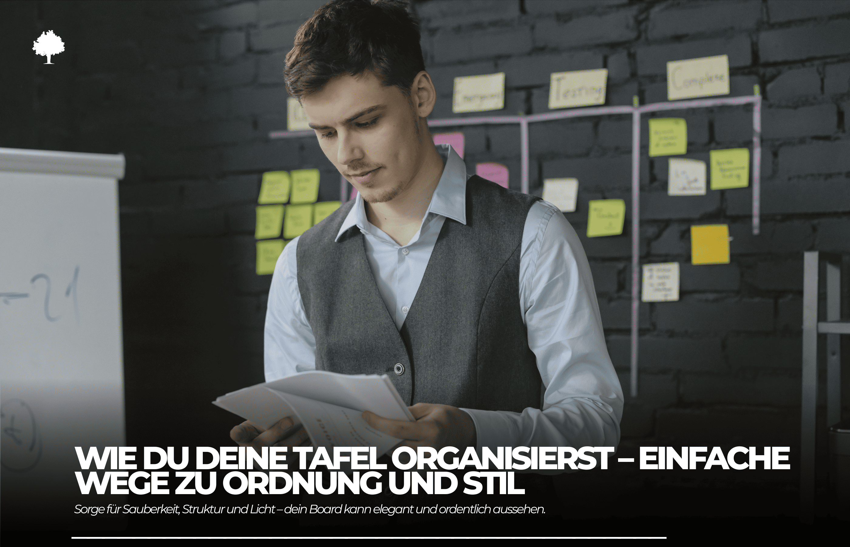 Nachdem die Notizen sortiert sind, kannst Du die Pinnwand neu strukturieren — und zwar so, dass sie nicht nur ordentlich aussieht, sondern Dir die tägliche Arbeit erleichtert. Ziel ist ein System, das leicht zu pflegen ist und ständigen Neuaufwand erspart.